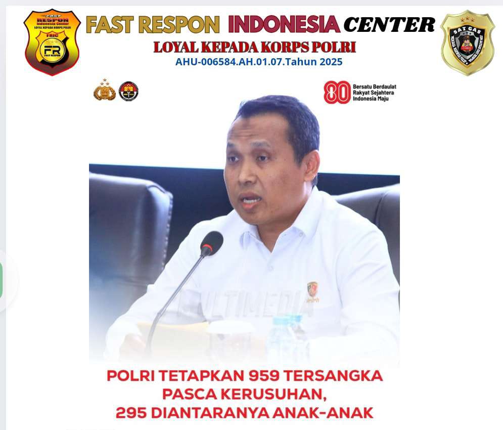 Jakarta | Informasi TV – Polri melalui Bareskrim Polri merilis data terbaru penanganan hukum pasca kerusuhan yang terjadi pada 25–31 Agustus 2025. Dari 246 laporan polisi, total ada 959 tersangka, terdiri dari 664 orang dewasa dan 295 anak-anak.